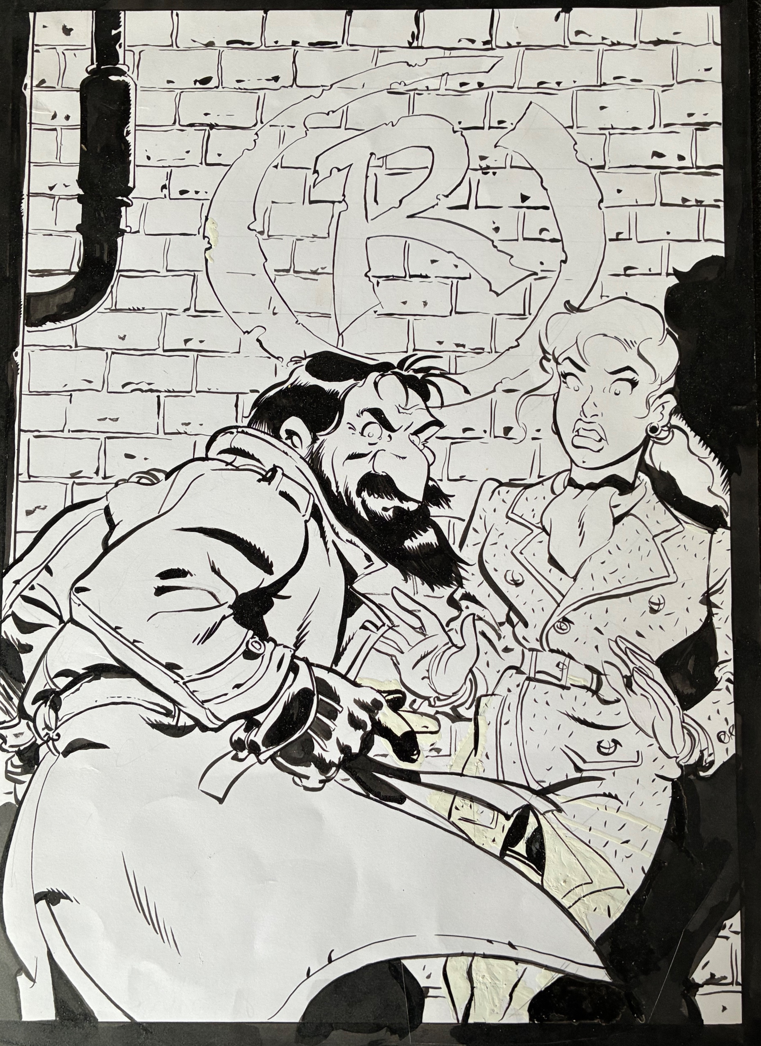 Ce dessin original réalisé à l'encre est un superbe hommage à la marque june de Jacobs pour Blake et Mortimer et de Raspoutine de Cortot Maltese avec Hugo Pratt, sans oublier la célèbre Pin up de l'artiste.